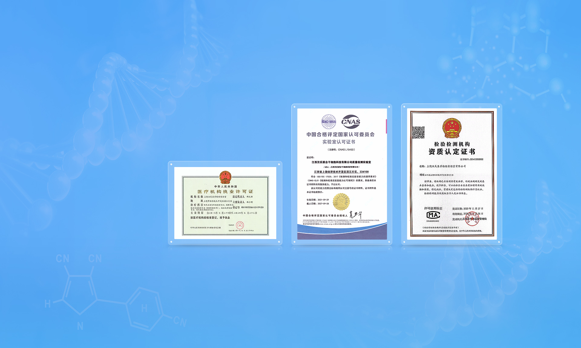 汉氏集团(创立于 2007 年)作为国内细胞治疗领域的高新技术企业,其核心子公司江西汉氏联合干细胞科技有限公司是江西省唯一同时获得 CNAS 资质、CMA 资质及ISO9001体系认证,业务范畴覆盖细胞质量检测、环境检测、医学检验等多个检测领域,经过多年发展,“汉氏联合检验检测”业已形成资质覆盖全面、技术领域贯通、资源协同高效,业务范围覆盖东北全域的第三方综合检测服务中心。